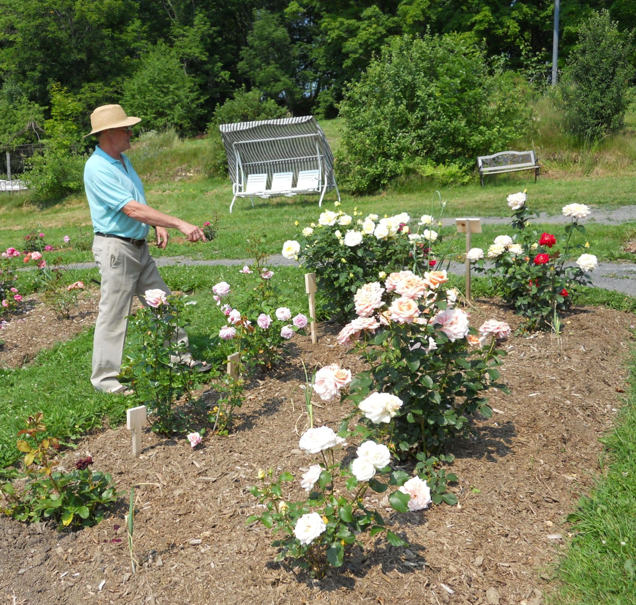 As we moved among the roses, Norman kept us informed as he explained the history of roses. Although he did give a good overview of the subject, not enough was credited to the precursor of the modern rose in the West, this being the Damascus rose (Rosa damascena). It is this Syrian variety of the rose that many historians believe to be is the mother of virtually all the roses in the West. It was brought back to Europe from Damascus, Syria by the returning Crusaders and through the centuries many other types were developed from this species.